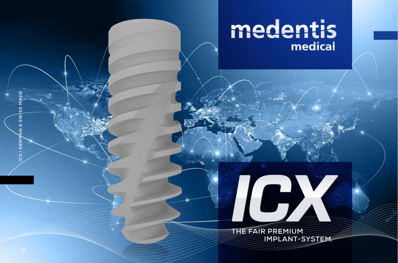 Since 2004, medentis medical GmbH has been unwaveringly advancing with the ICX system in Germany. At that time, the idea was to offer a cost-effective implant system, that everyone could afford and, as a fair brand implant, to combine the findings of the successful implant ology of the previous 20 years in a single system.